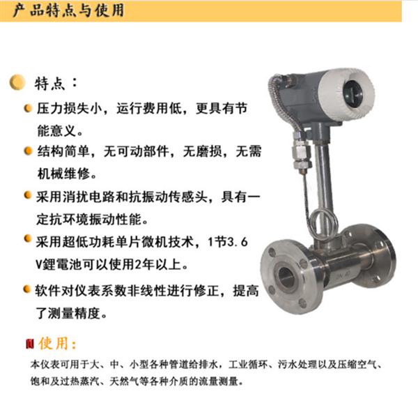 蒸汽流量計是利用液體振動原理而開發的一種新型流量計,廣泛應用在石油、化工、冶金、造紙等行業流體的計量。該流量計無可動部件,可靠性強、精度高、壽命長,可在很寬的流量范圍內精確測量液體的瞬時流量和累計流量。其不受介質溫度、壓力、粘度及組分的影響,同時不堵、不卡、不易結垢、耐高溫、高壓,安全防爆,適用于惡劣環境。流量計分一體化顯示和遠傳顯示,并可輸出脈沖信號或電流信號與微機聯網。